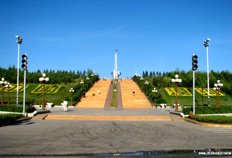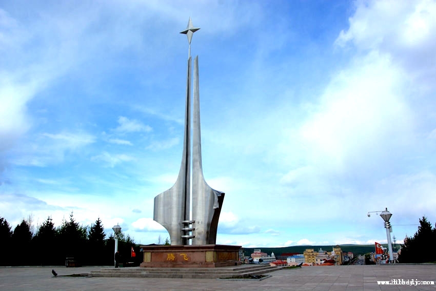 漠河北極星廣場,俯瞰漠河縣城全景。每年五一到十一,每周都有大型的廣場文化活動。每年一度的北極光節(jié)、冰雪文化節(jié)、國際冰雪汽車越野拉力賽開幕儀式都在這里舉行,北極星廣場已成為漠河人生活部可缺少的一部分。位于153個臺階至上的北極星雕塑是漠河縣的標(biāo)志性建筑,名為騰飛。左面是一只展翅欲飛的天鵝,右面是一只引吭高歌的金雞,意為漠河是“金雞之冠、天鵝之首”,最頂端的星位北極星,意為漠河是祖國北陲的一顆璀璨明星。