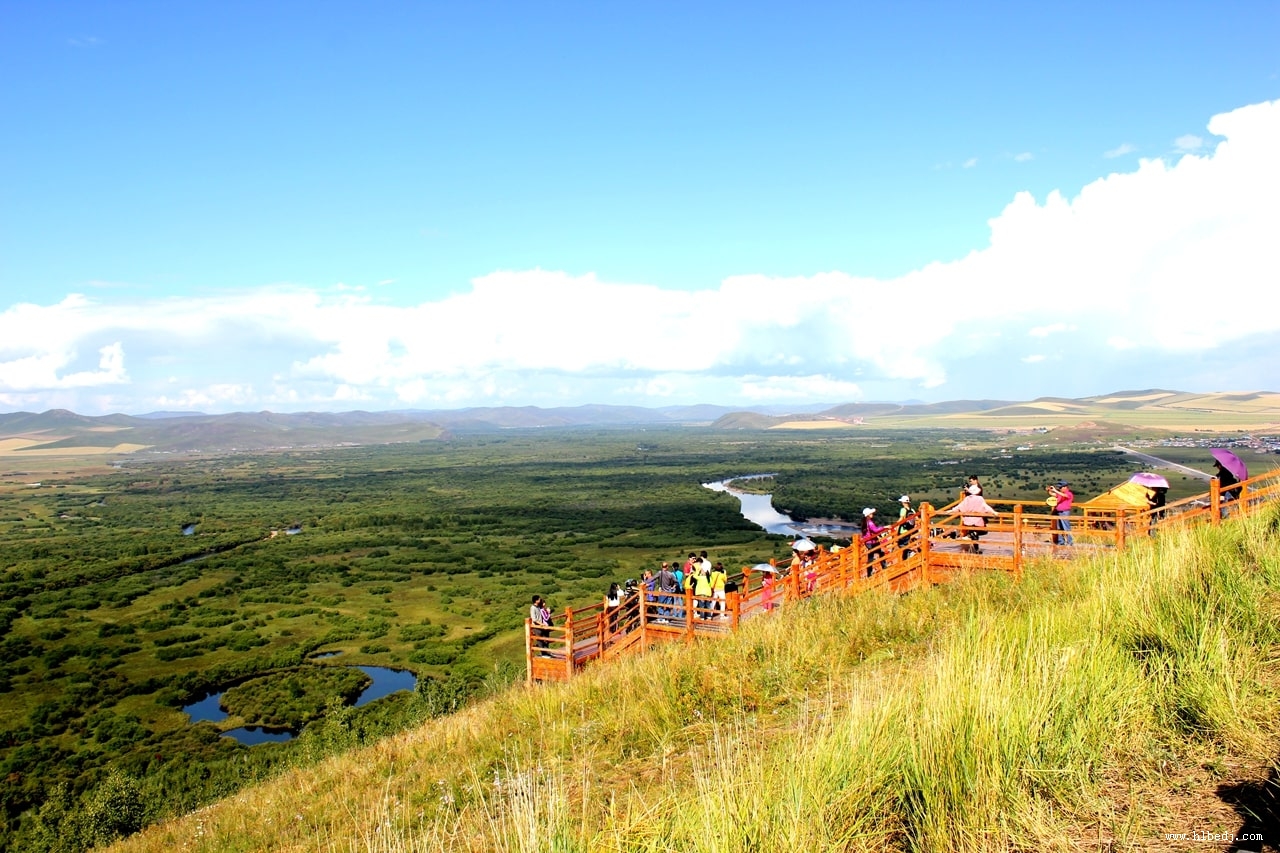根河濕地旅游區(qū)位于呼倫貝爾額爾古納市拉布大林鎮(zhèn)的西北郊,距市區(qū)3公里,面積約為3平方公里。這里地形平緩開闊,額爾古納河的支流根河從這里蜿蜒流過,形成了壯觀秀麗的河流濕地景觀。根河像一條銀色的玉帶彎彎曲曲地在平坦的草原上流淌,由于河流曲流的裁彎取直而形成了多處牛軛湖鑲嵌在碧綠的草地上,像一串串寶石,河流、湖泊、植被的顏色隨四季而變,風(fēng)光有巧工難繪之妙,天然景色有觀賞不盡之美。